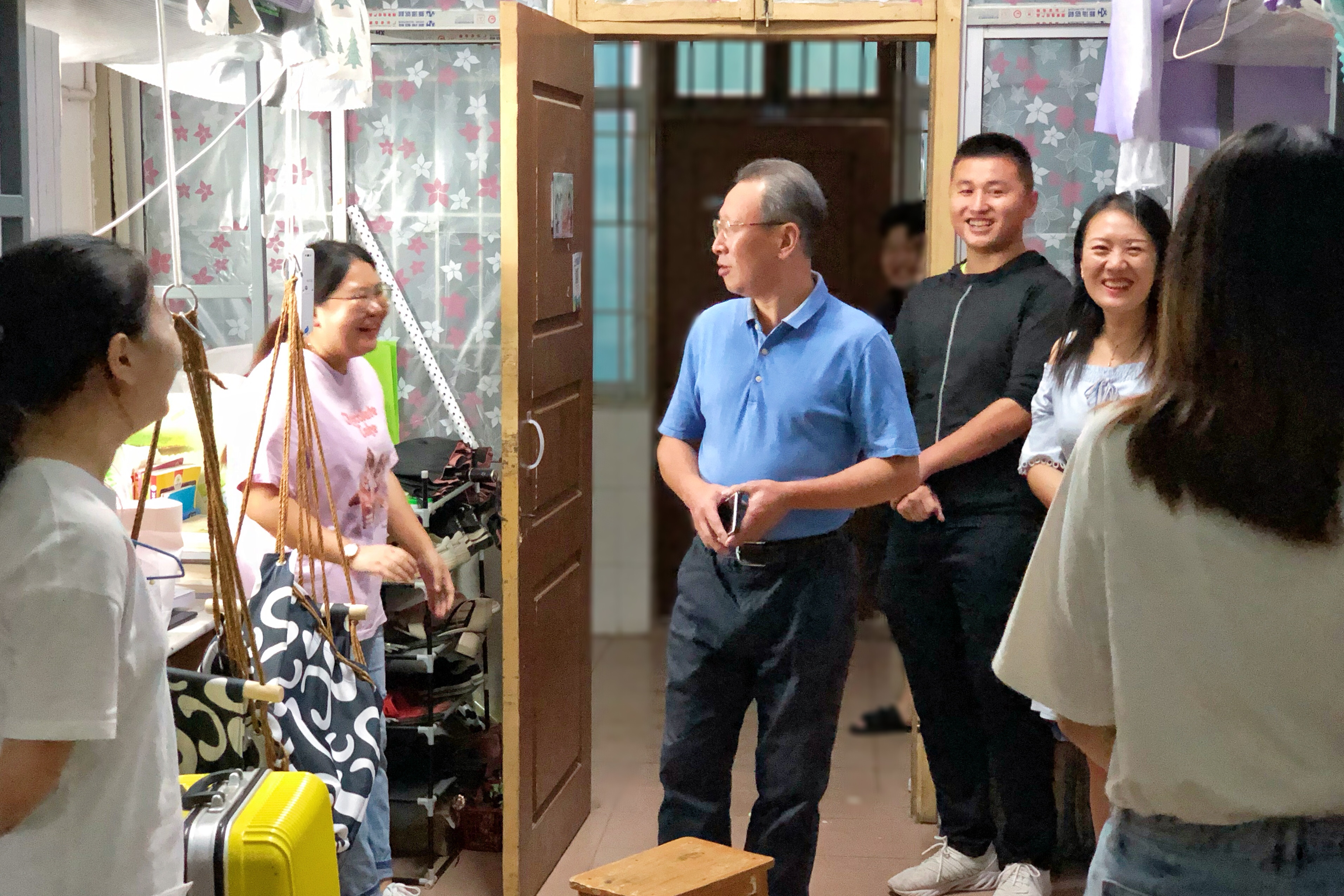 新学期,新气象。9月1日晚,外国语学院院长欧华恩、党总支副书记罗晶等院领导带领全体辅导员、班主任深入桃园、松园学生宿舍,亲切看望返校学生及时了解学生返校及学习生活情况。
