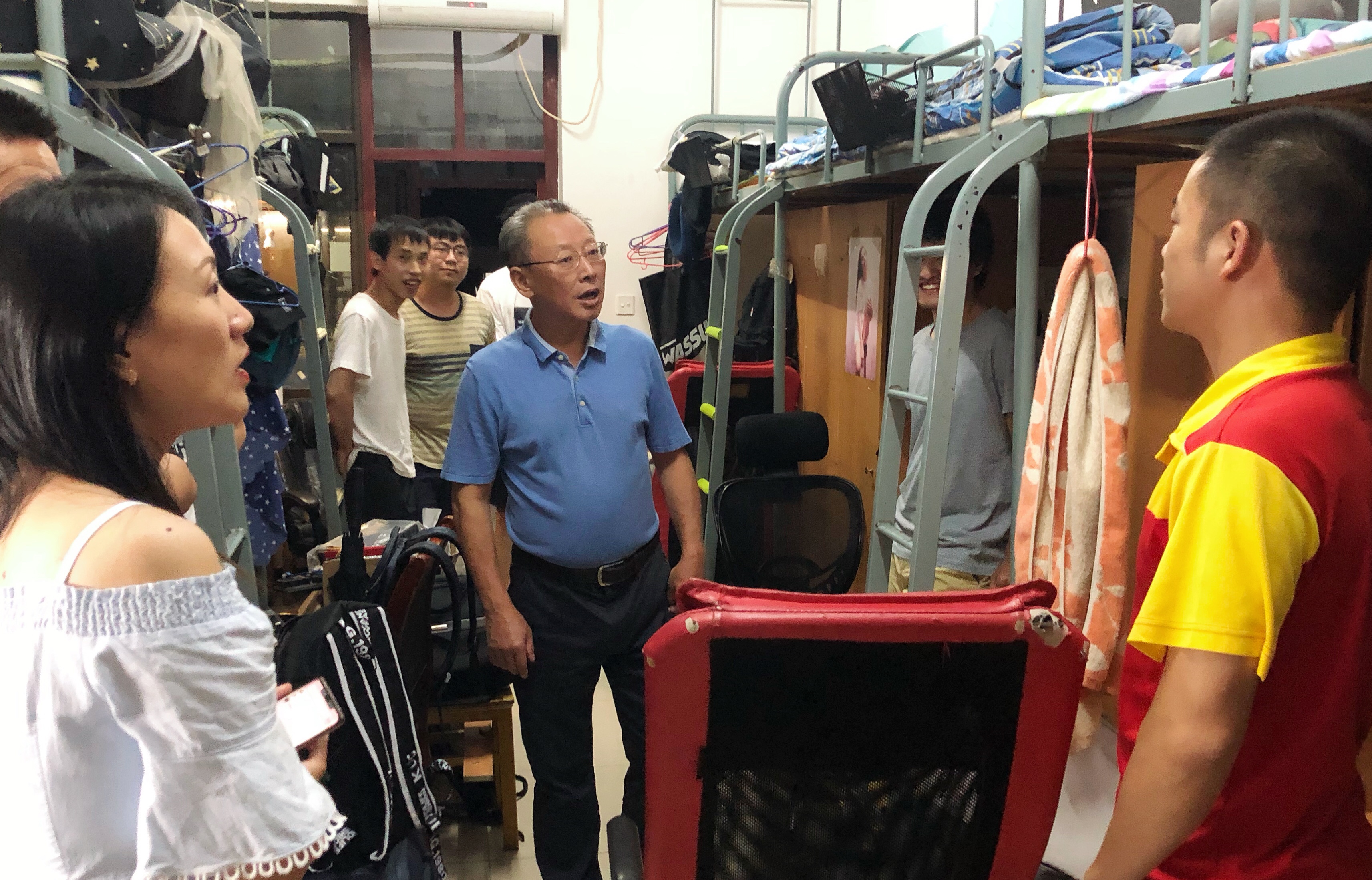 在走访中,院领导、班主任与同学们亲切交谈,详细询问他们假期怎么过的和入学后的感受,了解他们的住宿、生活情况,让同学们感受到来自学院的关心和家一般的温暖。在松园4栋学生宿舍,欧华恩得知李海东同学即将应征入伍说道:“在部队里不要害怕困难,男儿就应当有此大志,弃笔从戎,保卫祖国。”在桃园4栋学生宿舍,罗晶了解到有两名同学立志要报考研究生时,鼓励他们努力学习,并预祝考研成功。