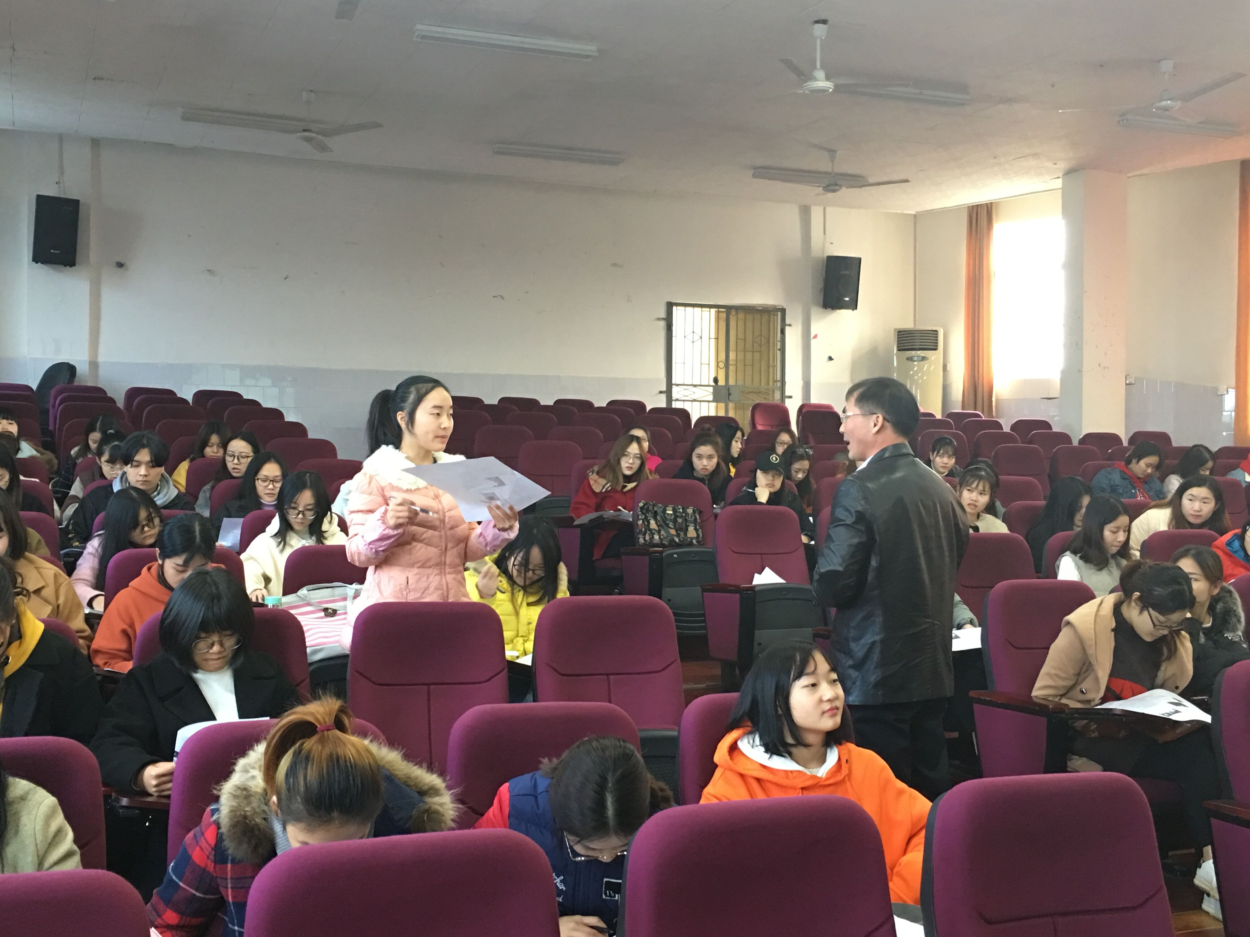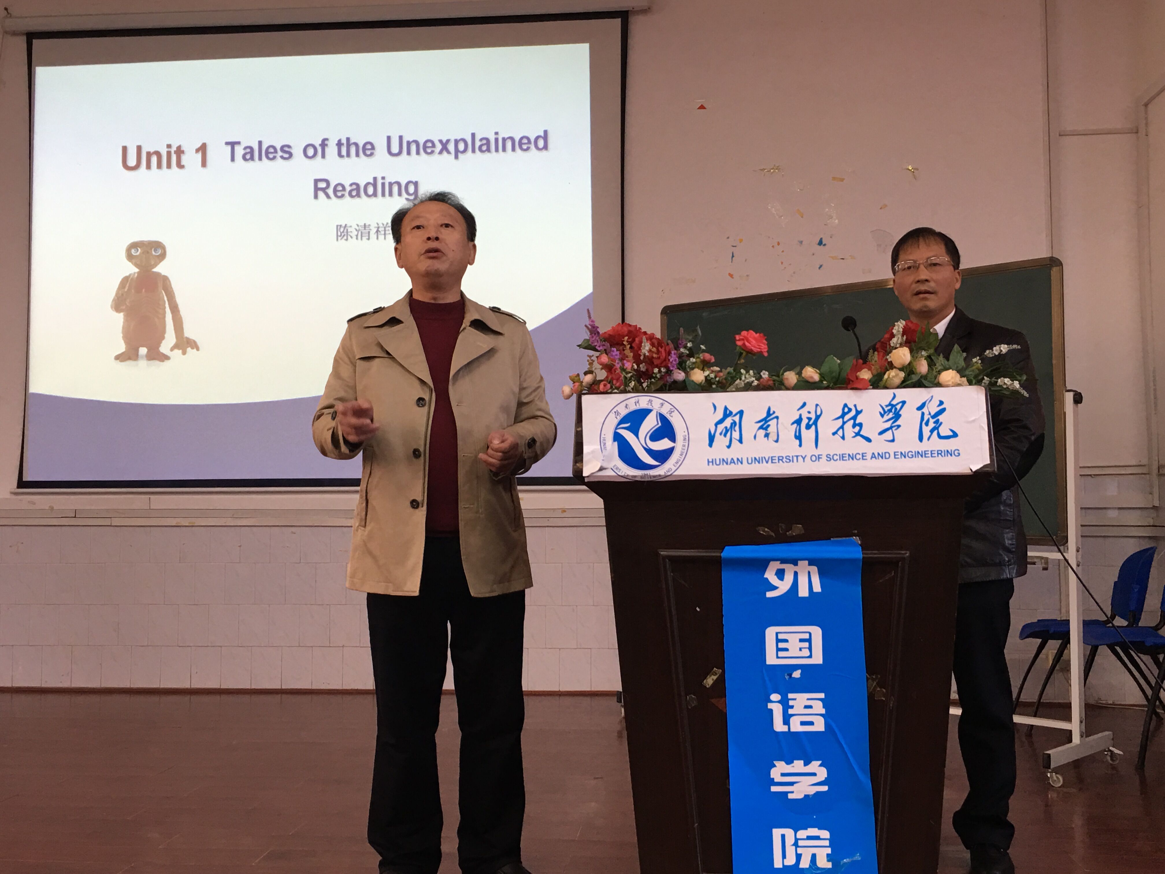 本网讯(通讯员 杜俊杰)12月5日下午,外国语学院邀请87级校友、宁远一中副校长、正高级英语教师陈清祥来校为15级英语师范专业学生讲学。外国语学院院长欧华恩主持讲座。