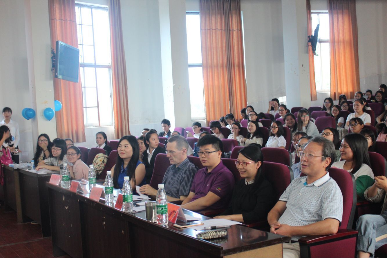 本网讯6月16日下午,外国语学院“健康、快乐、成长”主题英语演讲比赛在博雅楼东三拉开序幕,该院全体14级英语专业生参加此活动。外国语学院院长欧华恩、音乐与舞蹈学院外籍教师Ernst Nolting Haulff教授等出席活动并担任评委。据本次活动的发起人、该院专任教师陈博娟介绍:本次演讲比赛启用传统以及风靡全球的TED演讲模式,让学生在舞台上一个人独特的视角,来诉说发生在他们身边成长的事。选手们都是通过海选,复赛,导师抢人i want you,导师指导进入决赛的。面对如此激烈的角逐每一位选手都使出浑身解数,从演讲稿的撰写,背景音乐的选择,道具的制作,演讲动作与表情安排等,选手们都做了精心准备。声情并茂,活泼向上,引领全场,富有激情,引人入胜的演讲,让台下的同学们情绪高涨, 每个同学都在享受这场高水准的英语视听盛宴。在舞台上同学们穿插了精彩的节目表演,英文歌曲,走秀,英语话剧,吉他弹唱,大家都在舞台上展现着自己的青春快乐,绘声绘色地用英语演绎着每一句话,展示一个又一个生动有趣的故事;