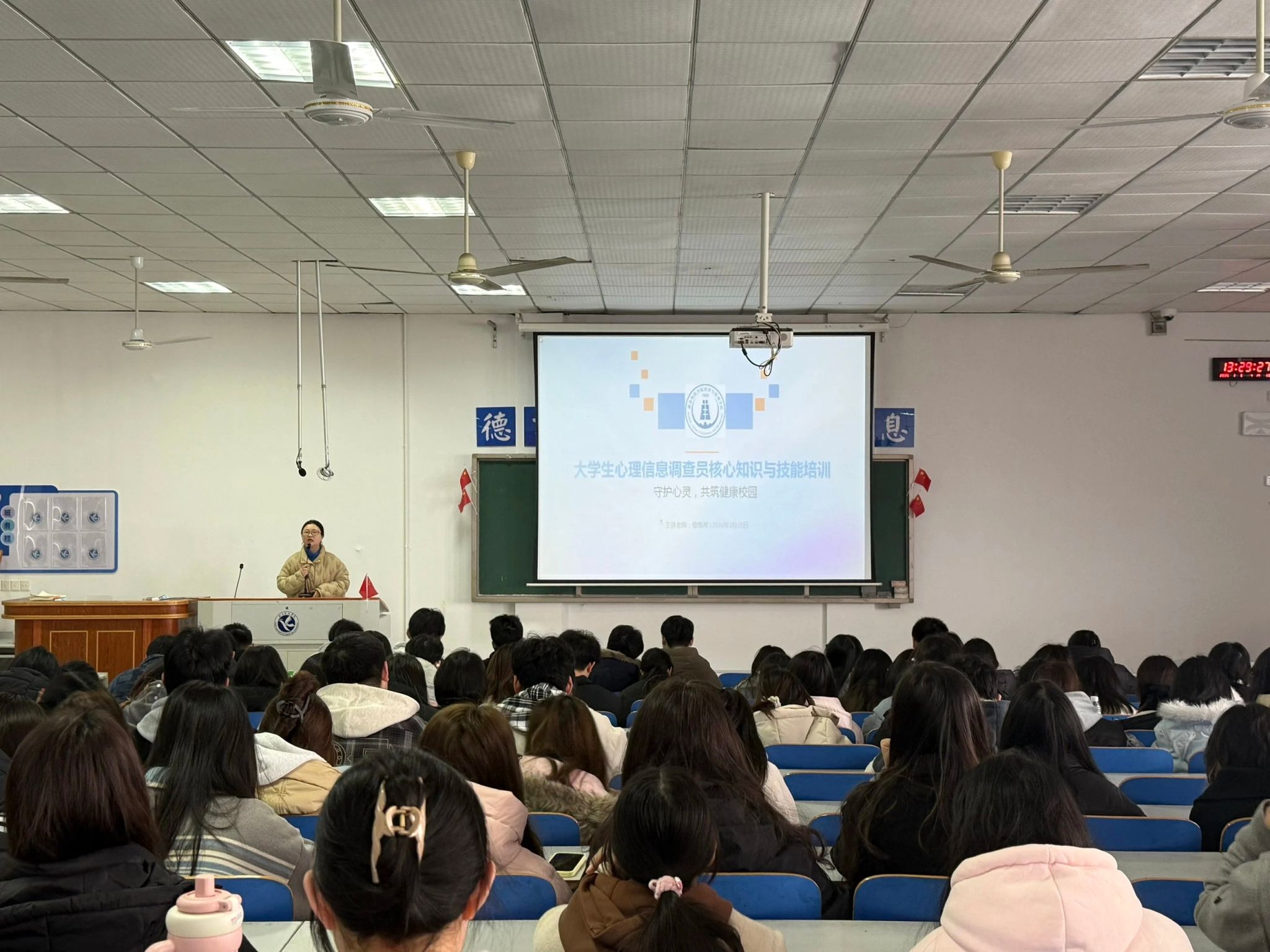 外国语学院于3月3日下午在校内教室开展会议,由黄雅丽老师主讲,全体心理信息员参训。