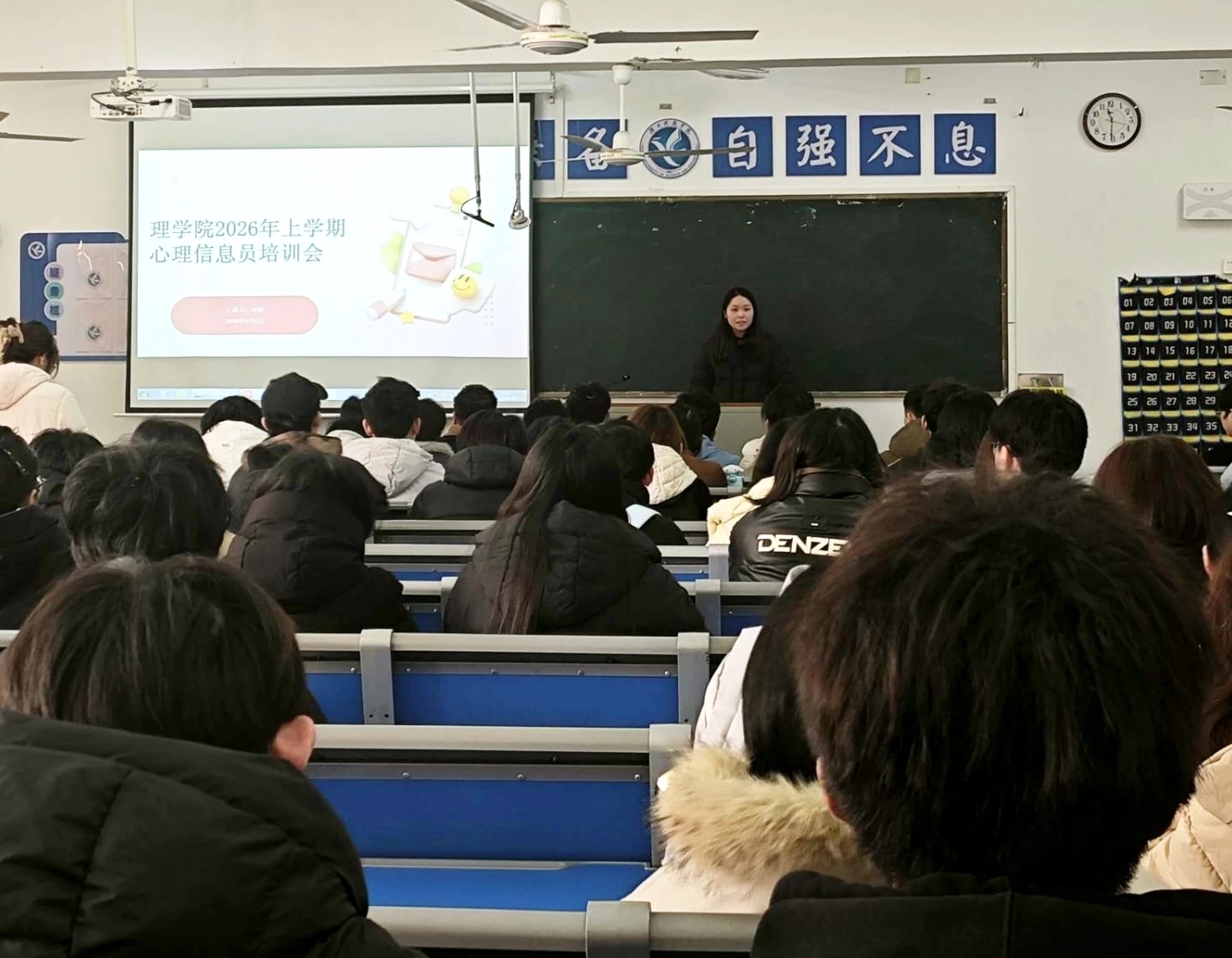 理学院于3月4日中午12:10在校内教室开展会议,由刘静老师主讲,全体心理信息员参训。