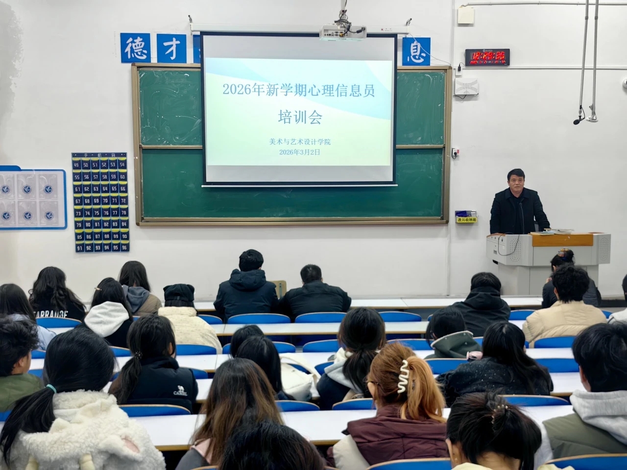 美术与艺术设计学院于3月2日中午12:10在南102教室开展会议,由胡敏辉副书记、付星星老师主讲,全体心理信息员参训。