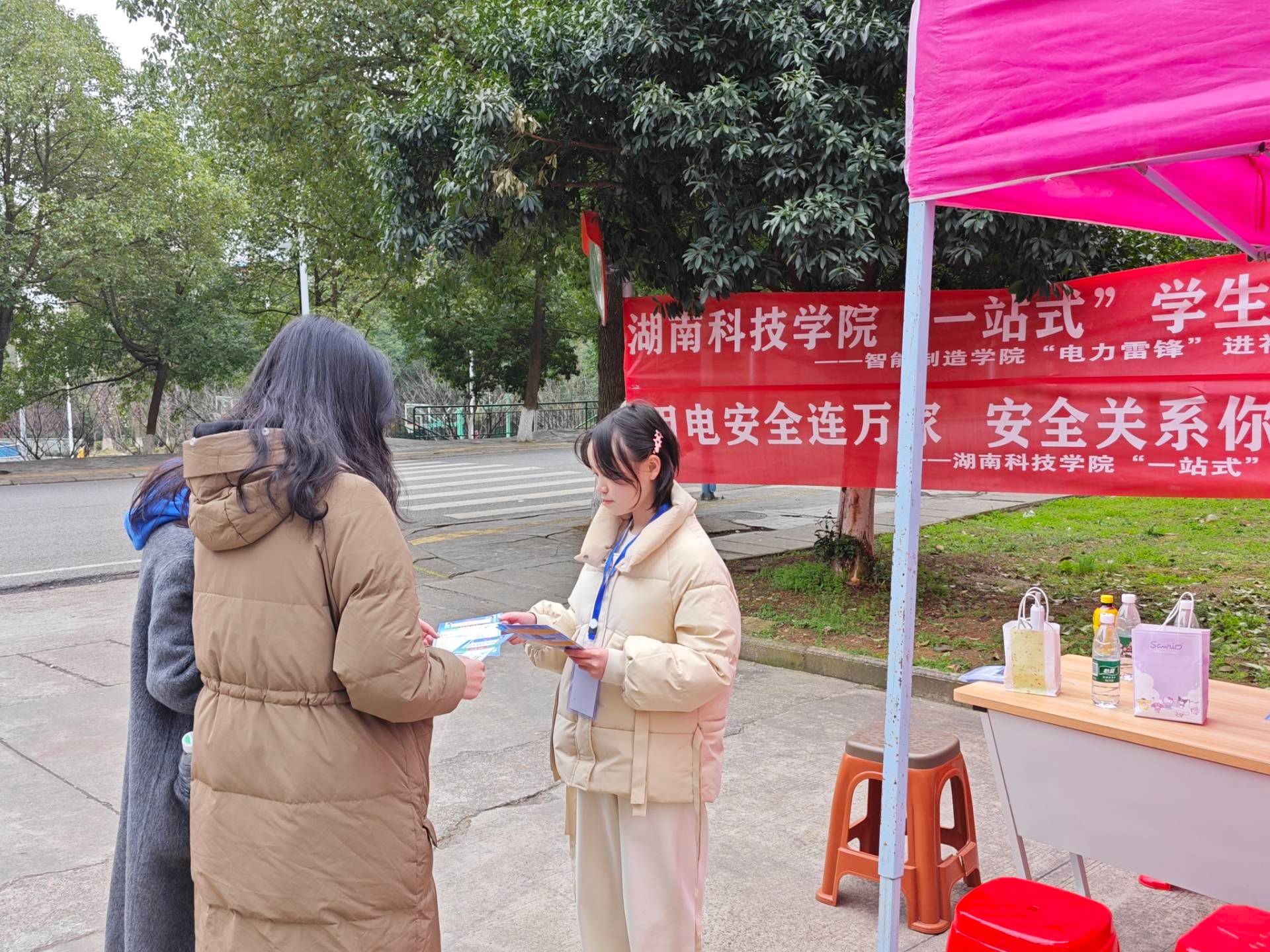 “你好,同学,这是关于校园用电安全的宣传单,请回去仔细看看,一定要注意安全用电哦。”一份份宣传单递到了学生们的手中,增强了同学们的用电安全意识,同时为校园用电安全贡献出一份力量。