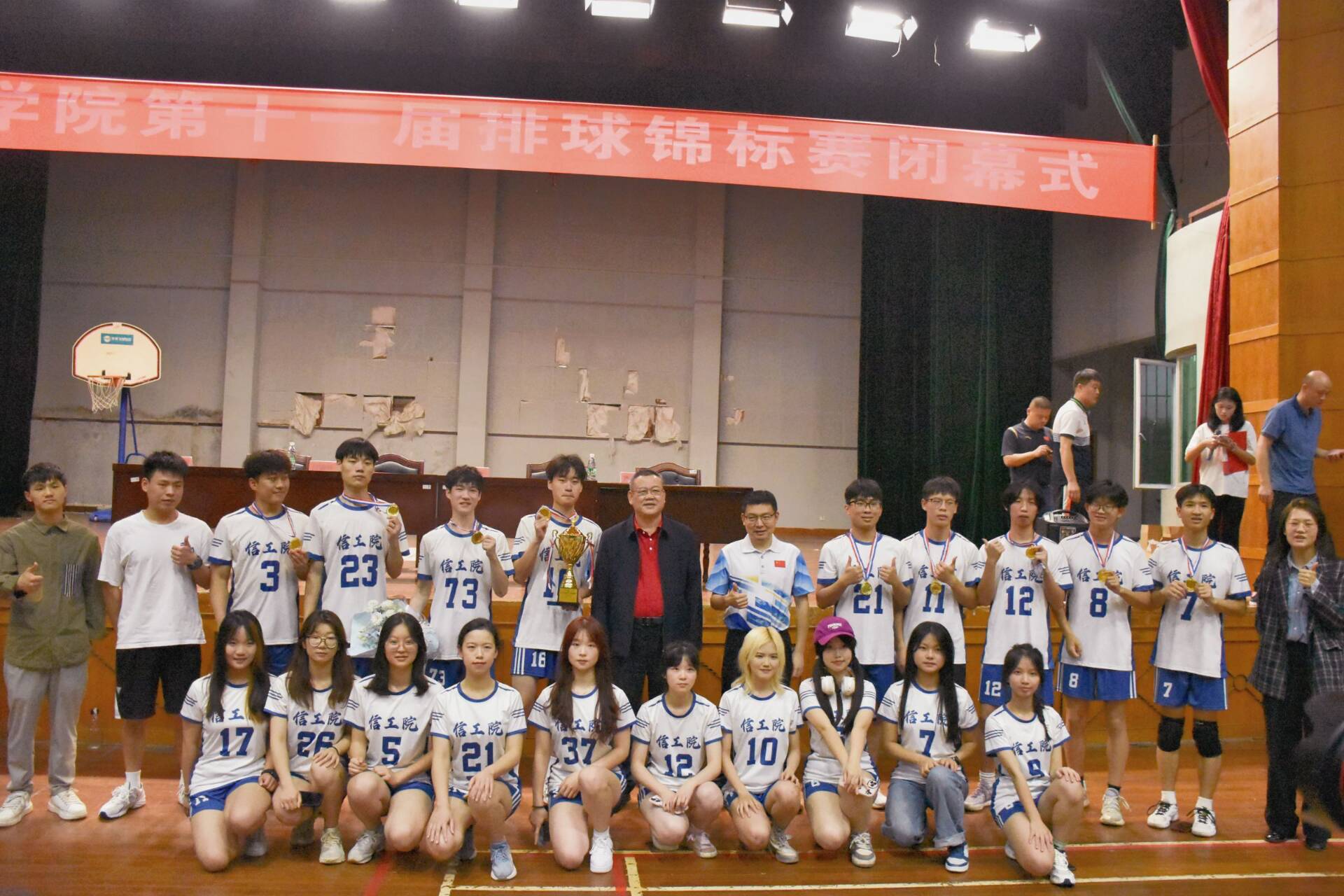 本网讯(通讯员 张展鹏 向慧蓉)4月25日,伟德第十一届排球锦标赛在体育馆圆满落幕。经过激烈地角逐,我院排球队员经过顽强的拼搏,凭借出色的团队配合,成功夺得冠军。
