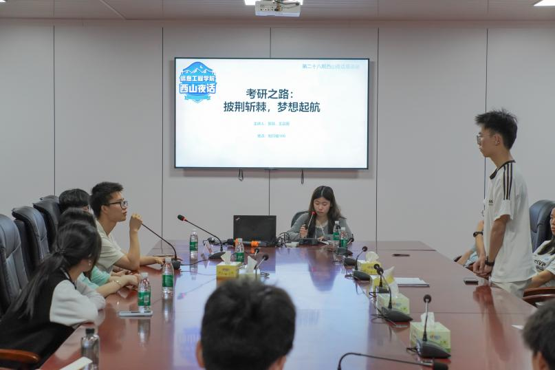 本网讯(通讯员 张子萱 唐巧娟)为更好发挥优秀学子的朋辈榜样引领作用,助力我院学子明确考研方向、掌握备考策略,4月17日,我院精心组织第二十八期“西山夜话”,主题为“披荆斩棘,梦想启航”考研经验分享,特邀学院2025届考研优秀代表——以总分382的高分录取贵州大学网络与信息安全专业的软件2102班黎劲,跨专业考研录取南方医科大学生物医学工程专业的数据2102班王晨雨担任主讲。大一至大三100余名学生参加。
