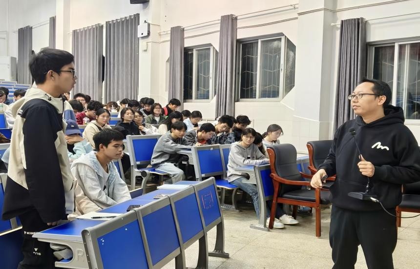 讲座中,扈乐华从计算机专业的发展现状切入,系统阐释了当前行业趋势与人才需求特点,详细绍了我院在人才培养模式与课程体系设置方面的具体举措。他结合生动案例,就学习方法、学科竞赛参与、职业证书考取以及未来就业方向等学生普遍关心的问题,进行了全面而细致的讲解。扈乐华特别强调,大学四年是专业能力塑造的关键阶段,建议每位同学尽早学习并熟练掌握至少一门编程语言,为后续专业深造与职业发展打下坚实基础。在互动环节,同学们踊跃提问,扈乐华一一给予耐心解答,现场气氛热烈。